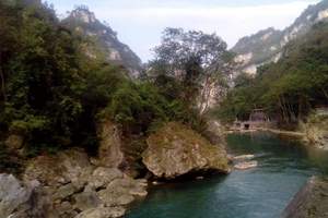 沿着石阶下坡,奇险幽深的峡谷就逶迤展现在眼前。走在这条深200-400米的地缝底部,只见尖峭的峰峦赫然屏列,瀑布异彩纷呈且气势磅礴,有一种幽深的神秘气氛弥漫在山谷
